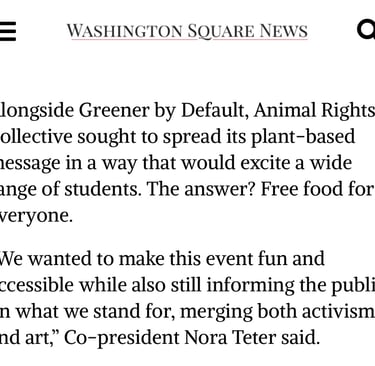 Co-hosted by the NYU Office fo Sustainability and the Greener by Default Coalition, we gathered over 20 amazing restaurants and brands to serve the best plant based eats in the city. Featured live performances from talented NYU musicians and a dorm-friendly teaching kitchen form NYU Eats.